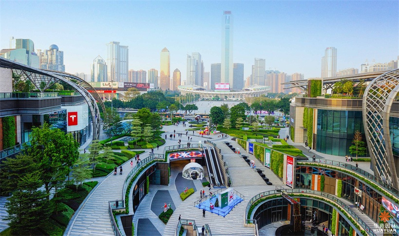 作為廣州的新地標(biāo),天環(huán)廣場(chǎng)的整體園林景觀簡(jiǎn)約、明快,富有季相變化的不同地被修剪成高低各異的塊狀組合,形成色彩絢麗的下層綠化帶,以姿態(tài)優(yōu)美的喬木作點(diǎn)綴,與灰、白為主的冷調(diào)鋪裝,構(gòu)建出具有現(xiàn)代格調(diào)的園林空間。