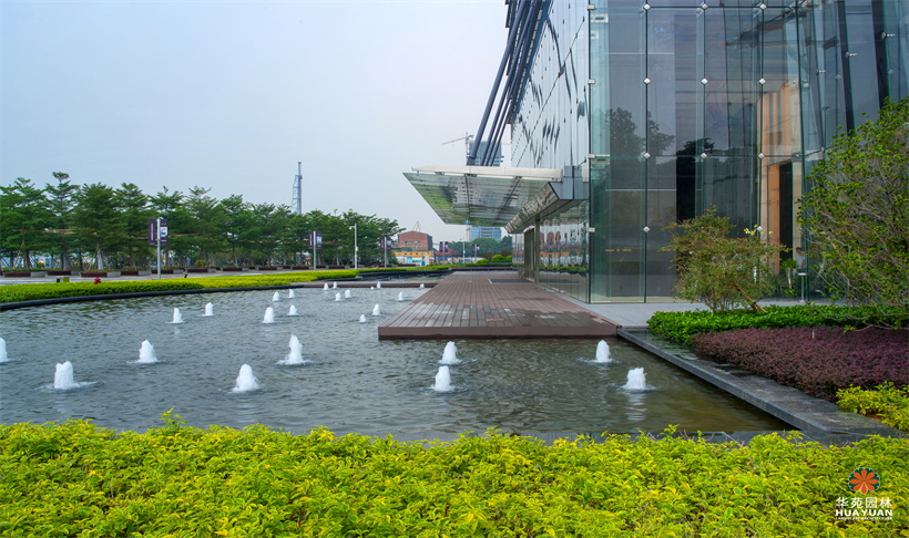 采取現(xiàn)代造園工法,凝聚“交通”企業(yè)精神,煉就一個個時代與力量的符號,大幾何布局中,融入小幾何綠植,“錨”定江山格局;親水臨江,例外水景交互輝映,道道線性波紋,傳寫激蕩江濤;定制星級商務港之園林舞臺,成為廣州之窗上的標志風景線。